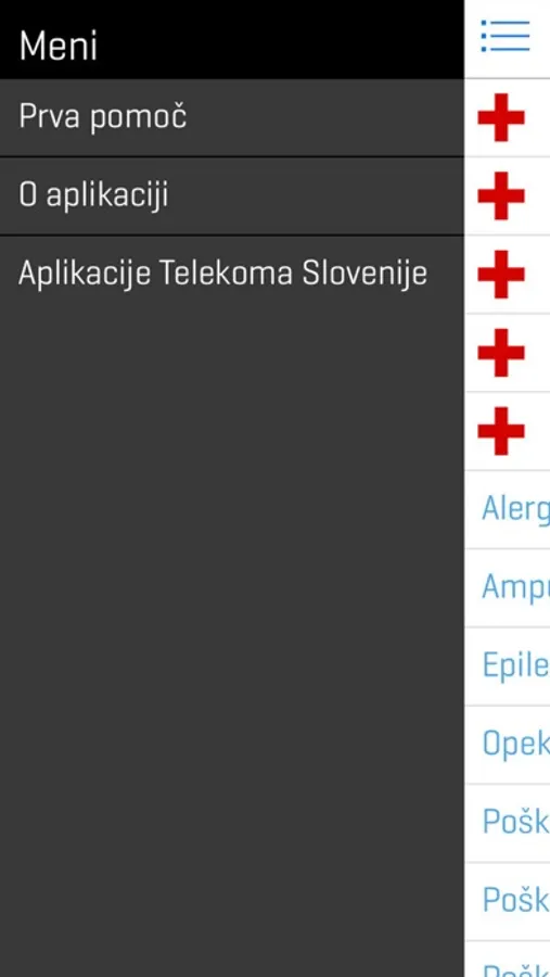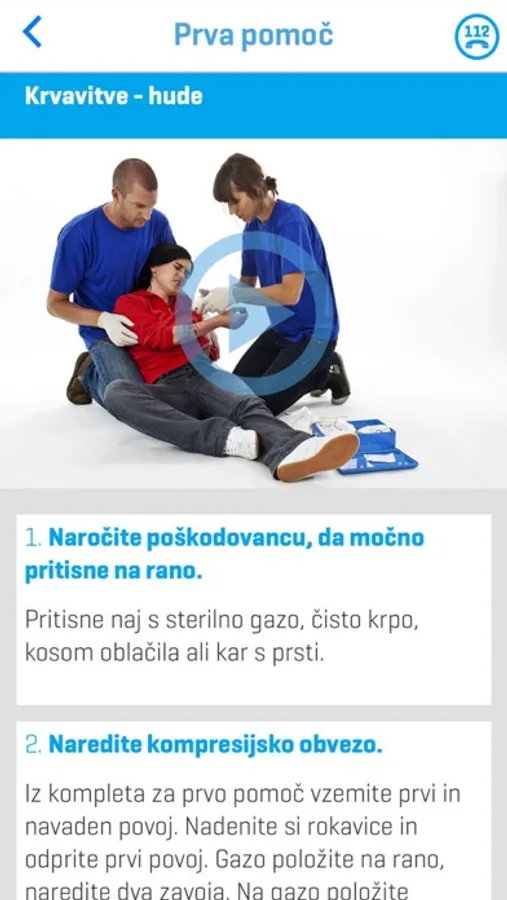Mobilna aplikacija Prva pomoč pokriva dva usklajena sklopa izobraževalno-informacijskih vsebin: