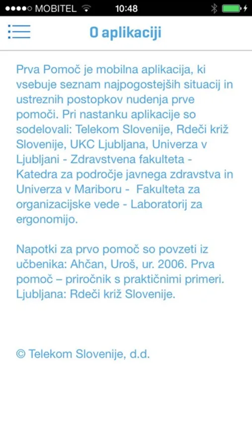 V sklopu razvoja aplikacije smo strokovno vsebino razvili skupaj z Rdečim Križem Slovenije, Univerzitetnim kliničnim centrom (UKC) Ljubljana, Univerzo v Ljubljani - Zdravstveno fakulteto in Univerzo v Mariboru - Fakulteto za organizacijske vede - Laboratorijem za ergonomijo.