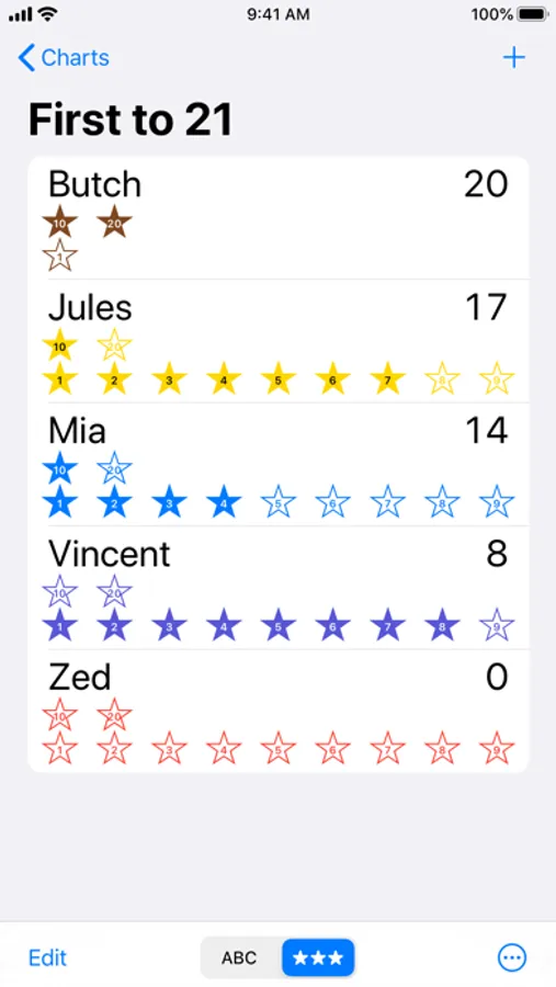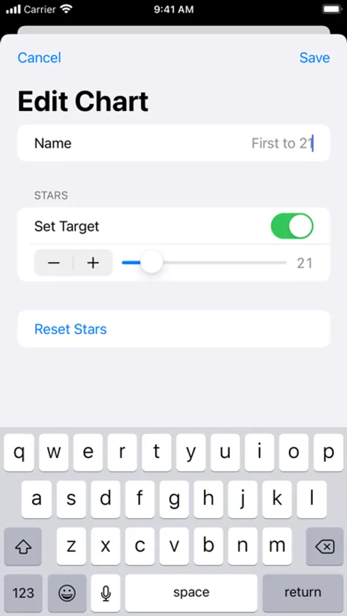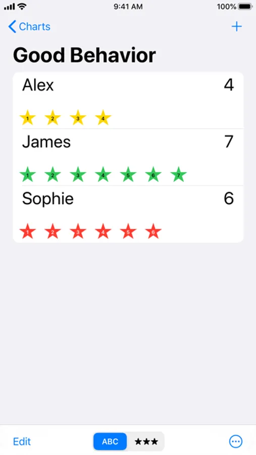 The app's appearance and user interface is deliberately simple to make it easy to use and understandable by children of all ages. There is a row for each child which clearly shows the number of stars they have. Tap a row to add a star (up to 99 or a chart-specific target, if required). It's that easy.