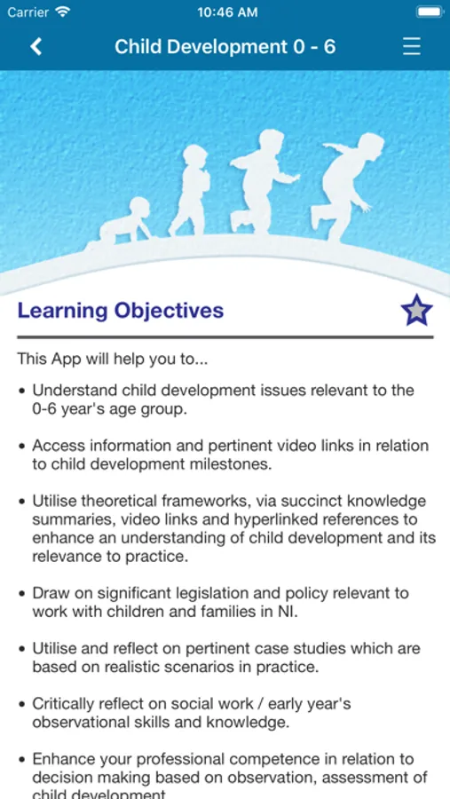 The Northern Ireland Social Care Council has been working in partnership with Skills for Care and Development, the University of Ulster and Queens University Belfast to develop this new and innovative mobile application for Child Development. It is underpinned by the expertise of the two universities in Northern Ireland and the authorship and intellectual copyright belong to the Social Work Departments at Queens University Belfast and the University of Ulster through both authors, Dr Anne Campbell and Professor Mary McColgan.
