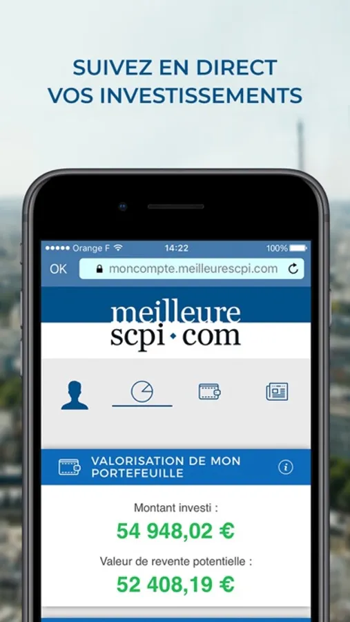 - De suivre l'évolution de votre portefeuille SCPI depuis votre smartphone