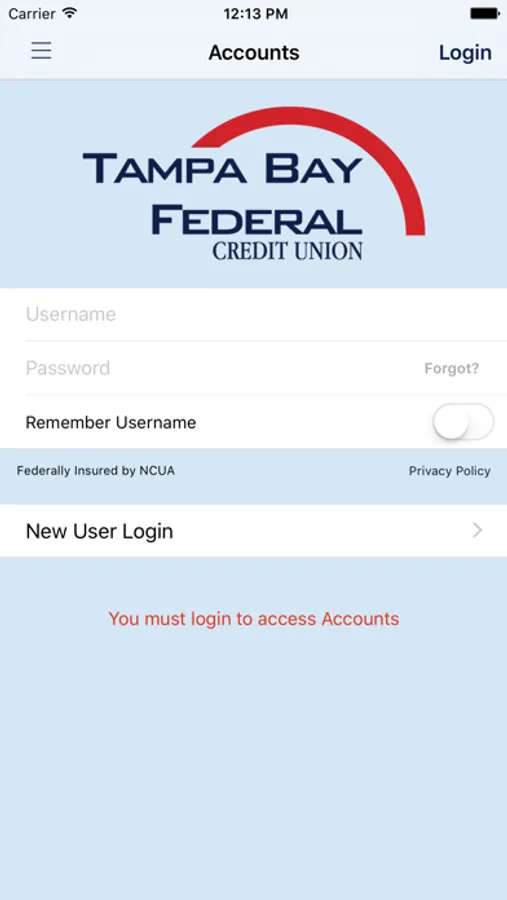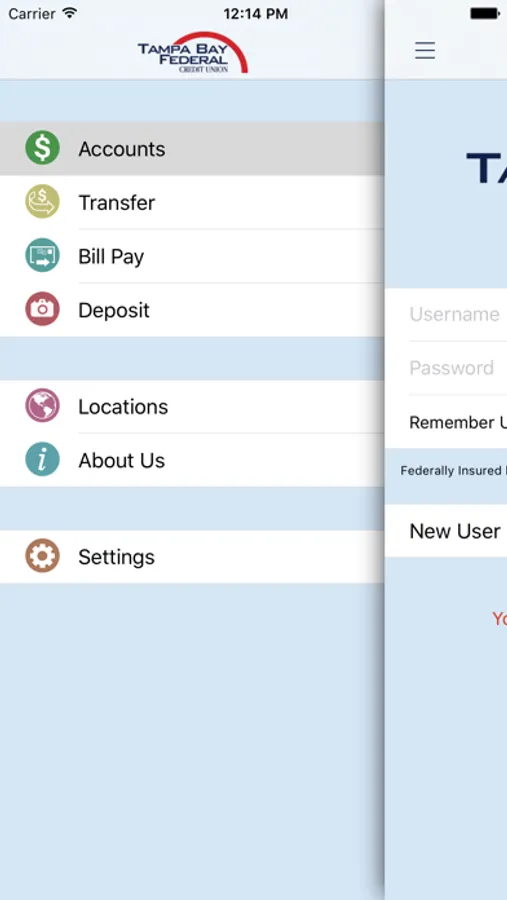 Tampa Bay Federal Credit Union's mobile app provides easy and secure access to your Tampa Bay FCU accounts. Easily check your balances, view transactions, make transfers, deposit checks, pay your bills, or find nearby branch locations or ATMs. Tampa Bay FCU's mobile app is available to all Tampa Bay FCU members.