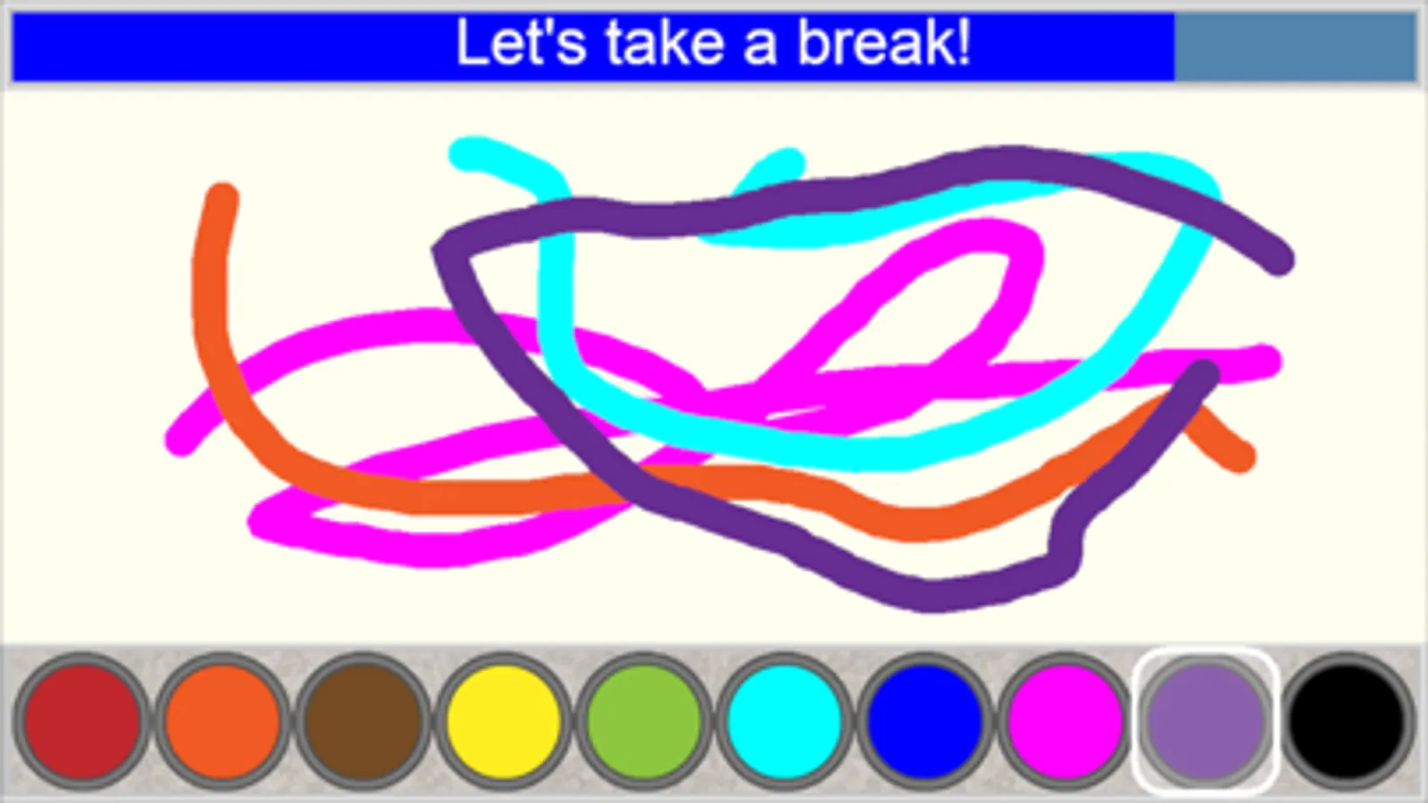 * Toy break - The child is given periodic breaks with fun on-screen fingerpainting that allows drawing on the screen. This feature can be turned off if the child does not need breaks or finds them distracting.