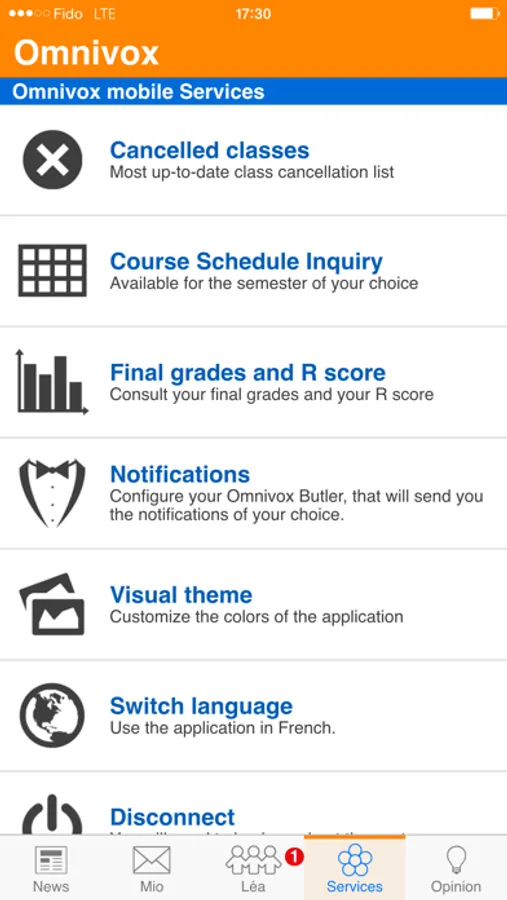 Omnivox Mobile connects to the Omnivox services offered by your University or College, and offers you instant access to many services.