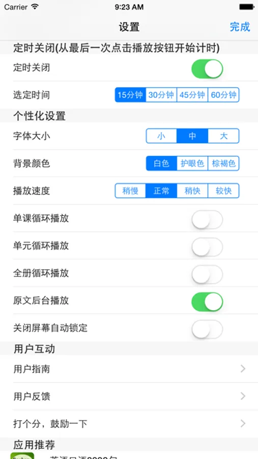 3.支持后台播放和单课循环播放、单元循环播放和全册循环播放。