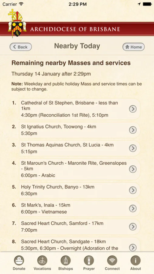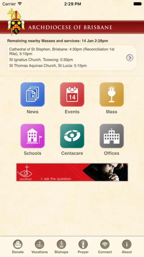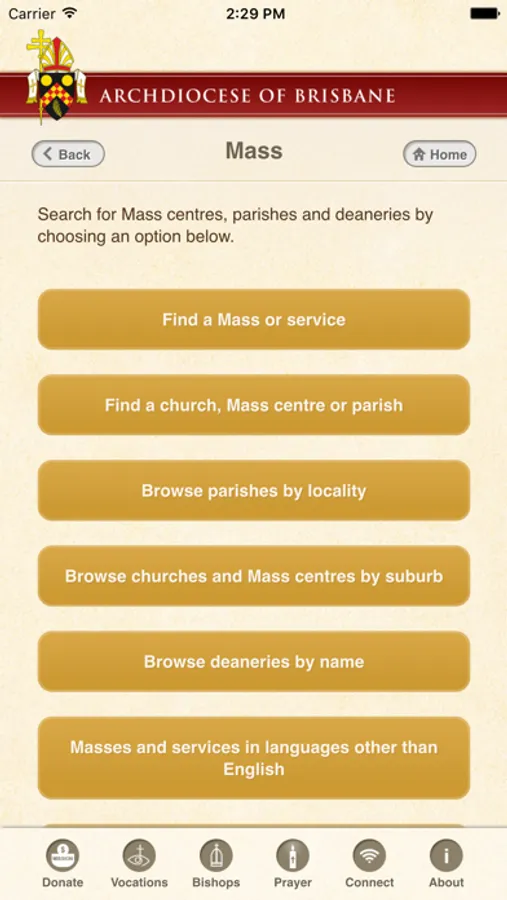 The Archdiocese of Brisbane app allows you to find:
