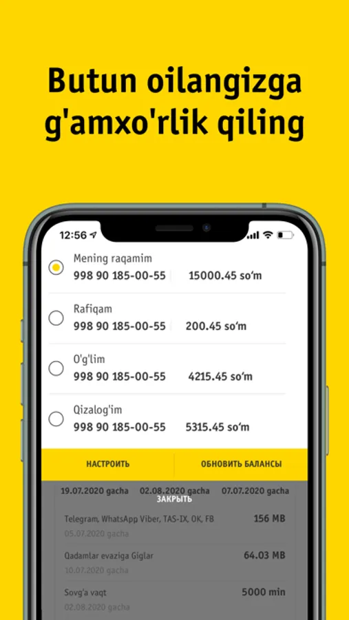 Multiakkaunt - ilovada qo'shimcha raqamni qo'shish va butun oilaga g'amxo'rlik qilish;