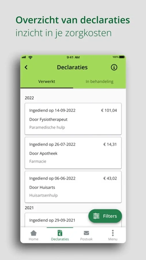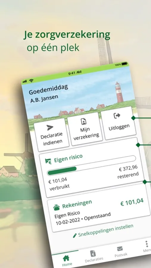 • zorgkosten declareren door in de app een foto van de rekening te maken of de digitale rekening te uploaden