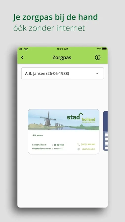 Met de Mijn Stad Holland-app heb je altijd jouw digitale zorgpas op zak, ook zonder internetverbinding!