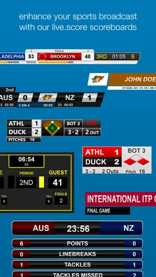 Display real-time controlled scoreboards, score bugs and lower thirds on TV, in your live stream, on your website or anywhere else.