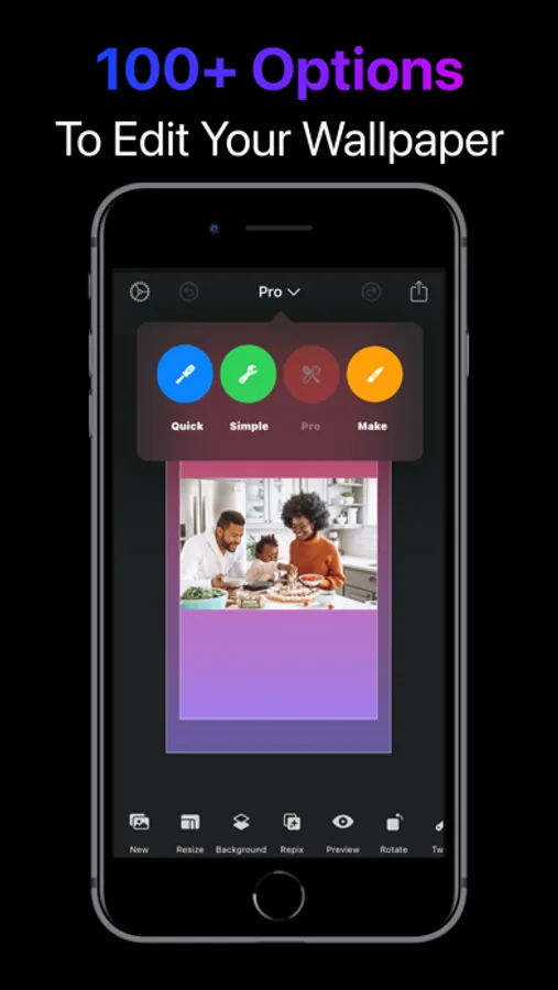 - Scale & Resize your wallpapers on black, white, color, gradient or blurred background.