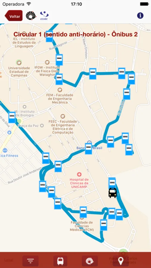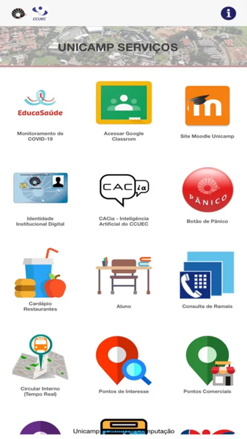 Entre eles, acesso ao cardápio do bandejão, consulta de ramais, trajeto e horários dos ônibus circulares internos.
