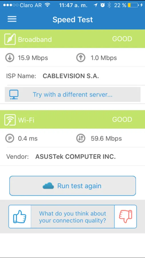 ● Provide feedback via the thumbs up/down as to your perception of connectivity quality.
