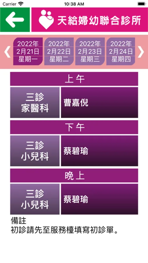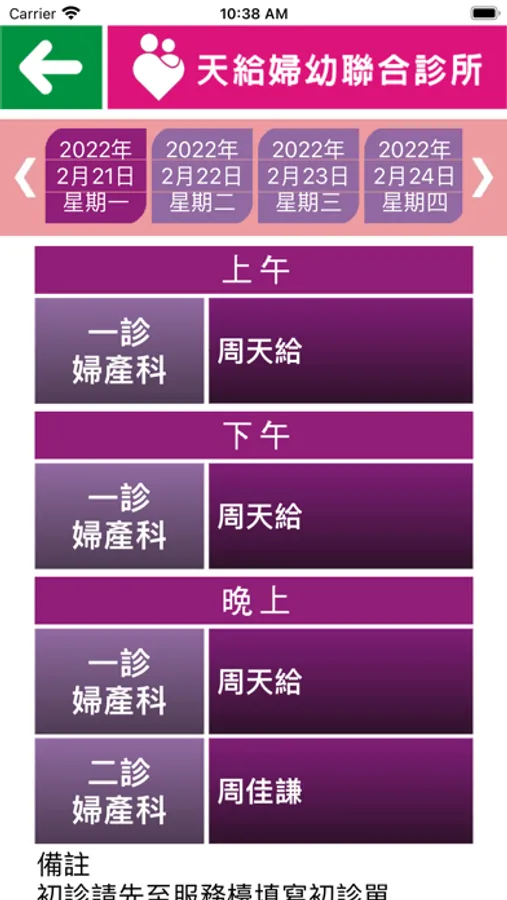 新莊天給婦幼聯合診所-婦產科24小時接生,門診全年無休,提供產科、婦女疾病、小兒科、家醫科、不孕症與遺傳諮詢、減重門診、戒菸門診、醫學美容、產後護理之家等診療服務,安裝天給APP「行動資訊服務系統」,讓您隨時隨地一手掌握就診資訊,包括看診進度、看診提醒、門診表、媽媽教室、最新消息、醫療團隊介紹、交通資訊等服務,歡迎民眾踴躍下載使用。