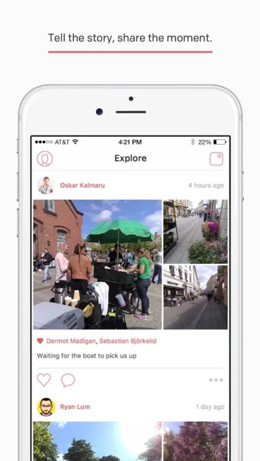 * Social: share your stories via Facebook, Twitter, Instagram or email, or with our Public Moments timeline, a place to connect to and be inspired by other Narrative users
