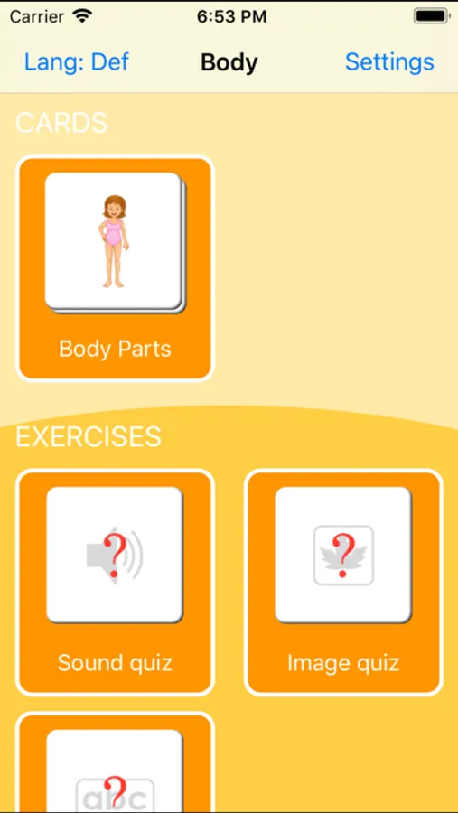 Learn with your child a body parts names with the colorful cards and three kind of quizzes. The cards are specially designed for children up to 5 years. Each card includes a picture, text and pronunciation in eight languages. This allows to use these cards for learning languages.