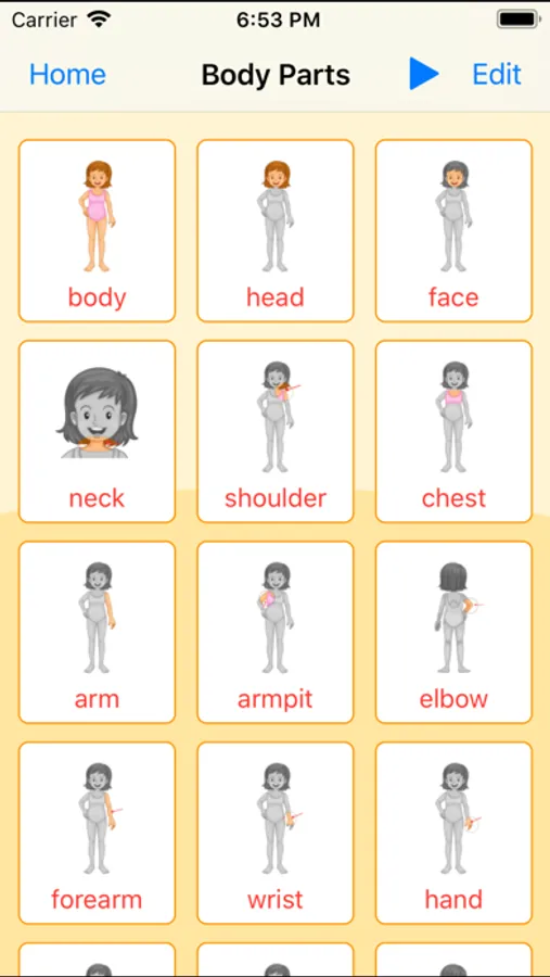 You can also personalize any card, change an inscription, and record your own voice. To do this, press “Change” button on the cards list screen, then press the blue “Edit” button which will pop up in the upper right corner of each card.