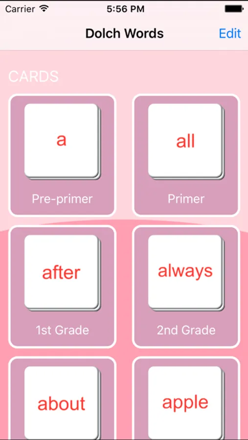 In the application you will find six audio quizzes to help your child learn the Dolch sight words.