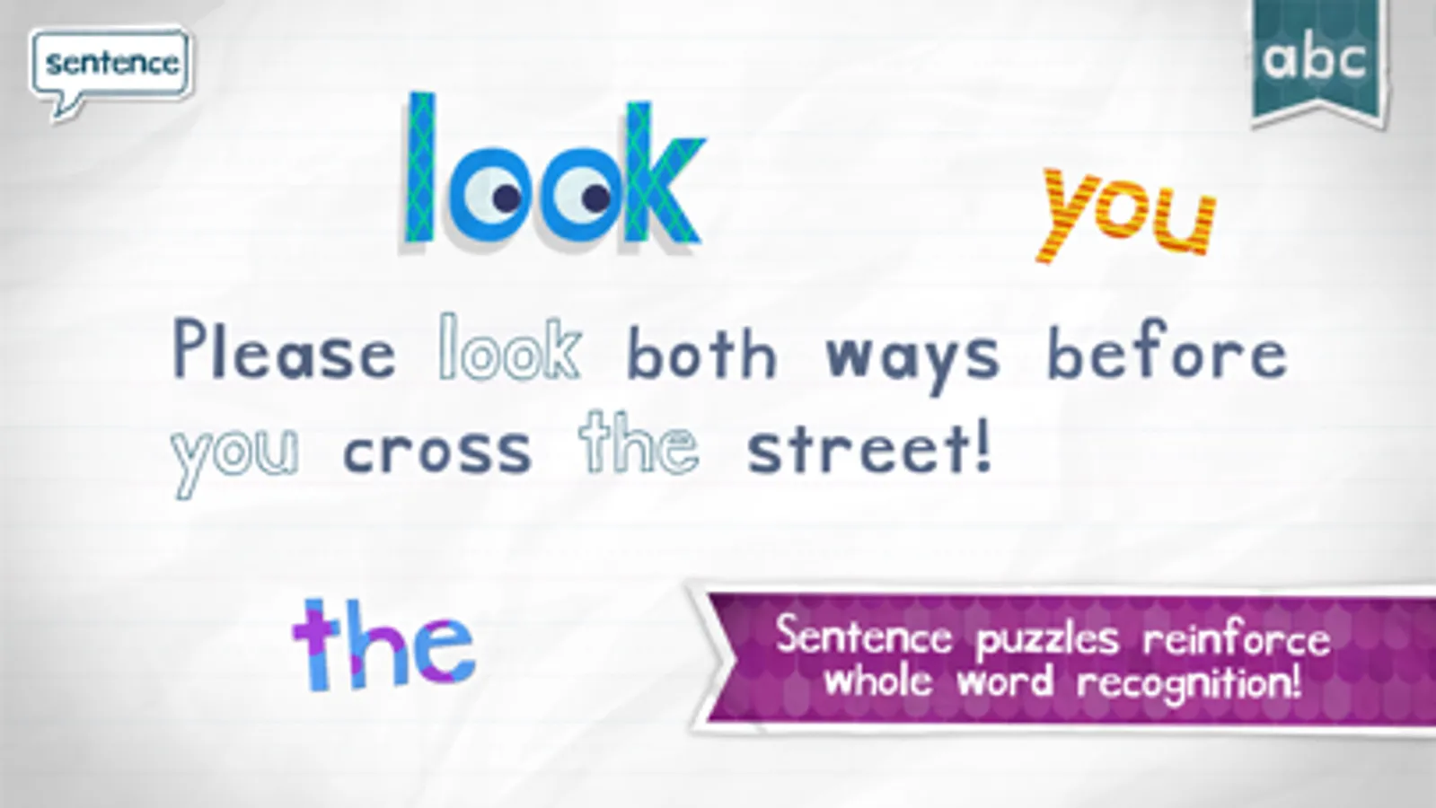 Kids will have a blast learning sight words and their context and usage with the adorable Endless monsters. Each word features an interactive word puzzle with letters that come alive, and then a sentence puzzle with words that become what they describe. See the word "dog" as a barking dog, and the word "up" reach for the sky!