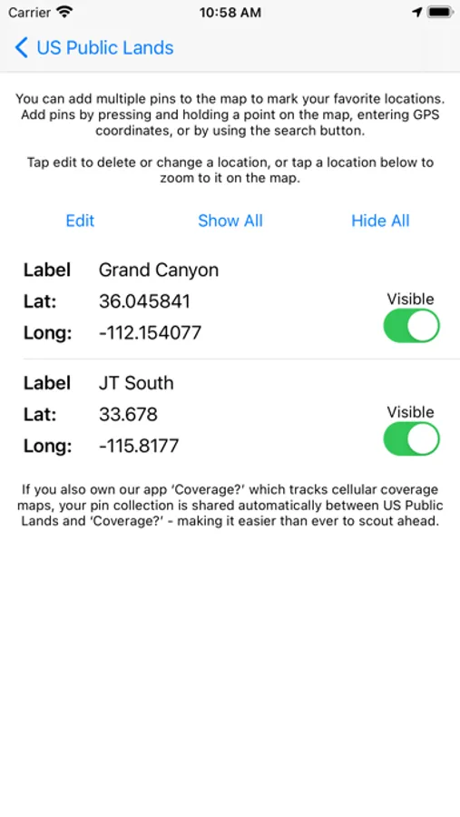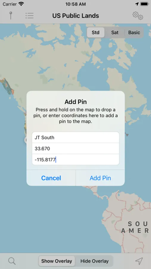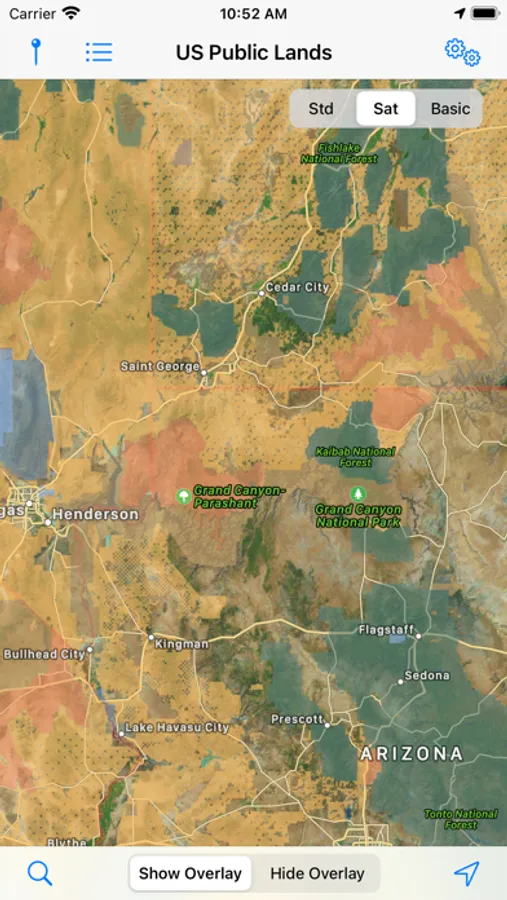 - If you have an internet connection (or have cached them before going out of signal), you can utilize the built in Apple Maps and satellite view maps as the base layer underneath the public land overlays.