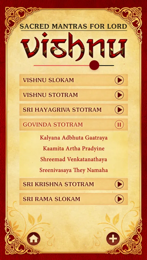This App contains a collection best Mantras or Slokas on Lord Vishnu, with enchanting music and lyrics in English.