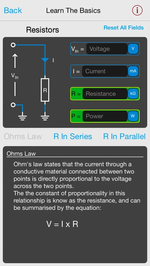 Whether you are new to electronics, or just need a helpful reminder of some of the basics, this tool is just what you need. The Basics tool will show you how to calculate Ohms Law, Parallel and Series Resistances, How to build a Transistor Amplifier, Decode some of that Electronics Jargon, and much more.