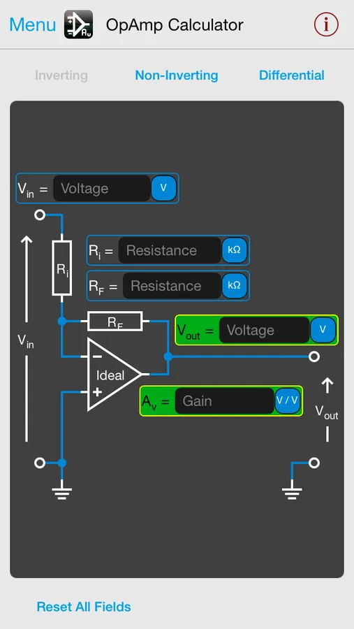 Quickly and easily design Op-Amp based Amplifier circuit designs. This tool has designs for 'Inverting', 'Non-Inverting' and 'Differential' amplifiers built right in. All you need to do is enter parameters for your design and this tool will do the rest.