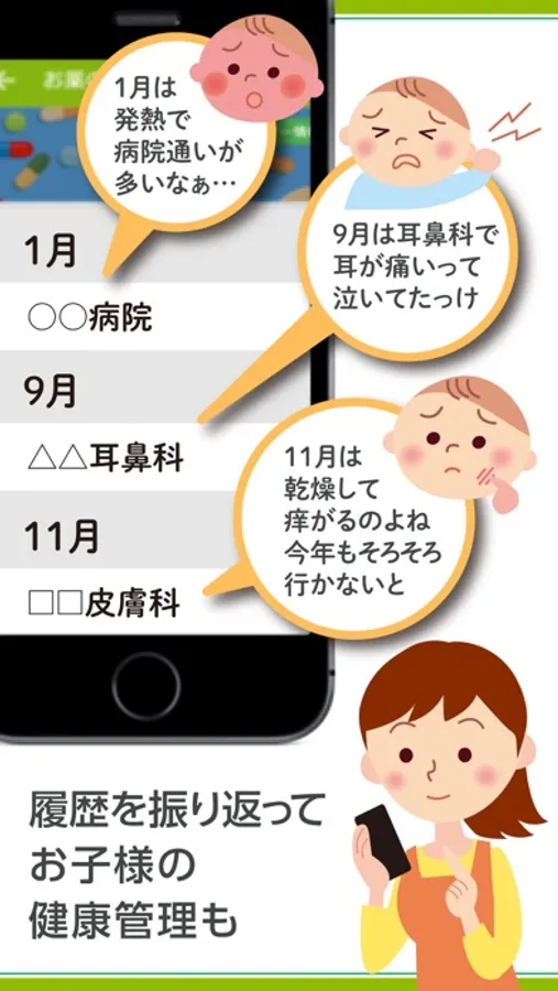 ご自身、ご家族みんなのお薬手帳を管理できます。