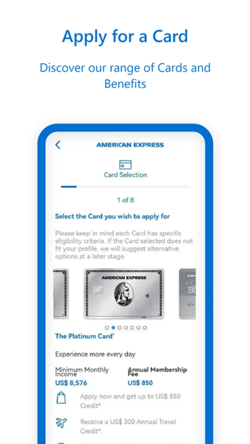 - Apply digitally through the app for your Amex Card in the UAE