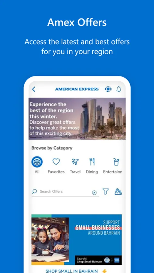 The official Amex (Middle East) B.S.C. Mobile app allows you to access your account from anywhere, safely and securely. Track spend, find offers, pay your bill and enjoy many more features in the Amex MENA app.