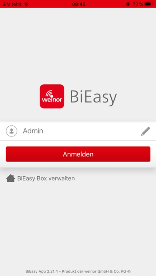 Für die aktuelle Version ist eine BiEasy-Box mit Version 3.14.3 oder höher erforderlich! Sie finden diese auf der Support-Webseite von Weinor unter