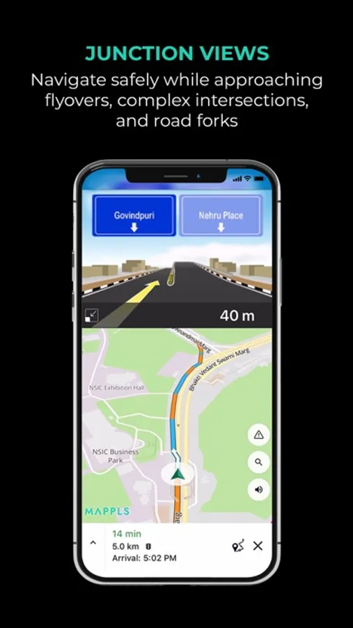 Mappls is powered by India's best maps from our company, MapmyIndia. In addition, Mappls offers detailed maps for the entire world, covering about 200 countries. Professionally mapped terrain with attribute rich road network with advanced information like multiple names, road classification one-ways, turn restrictions, divider, service lanes, roundabouts, flyovers, tolls, slip roads, ramps and much more.