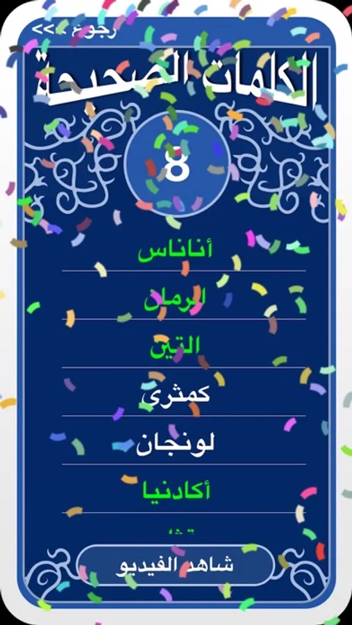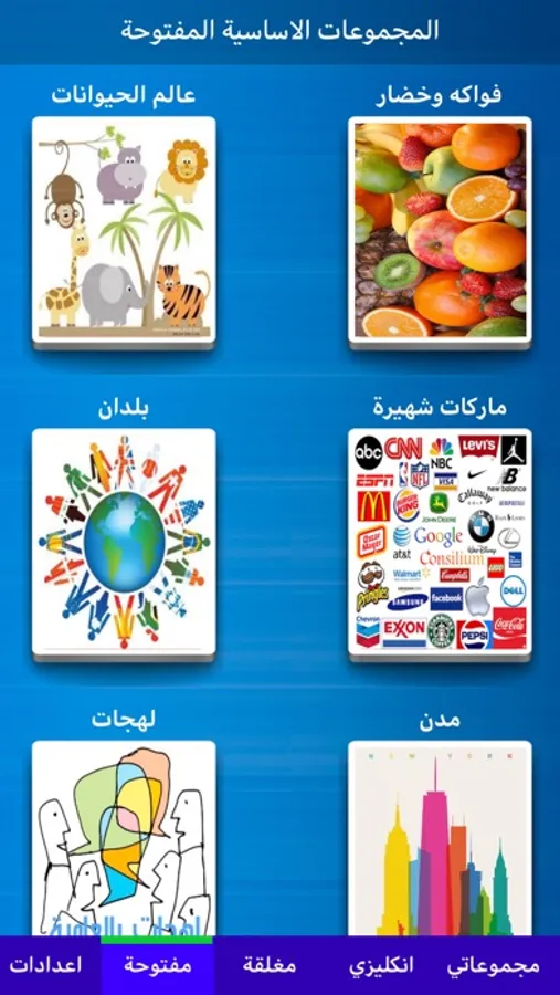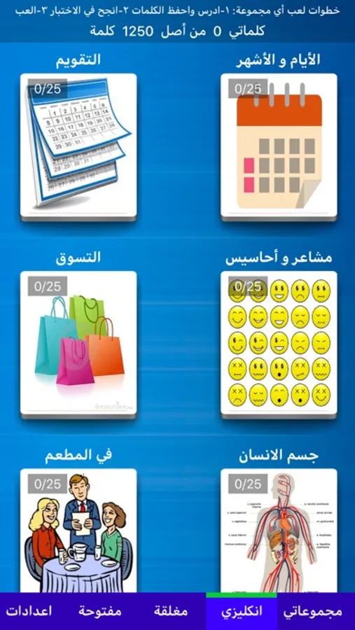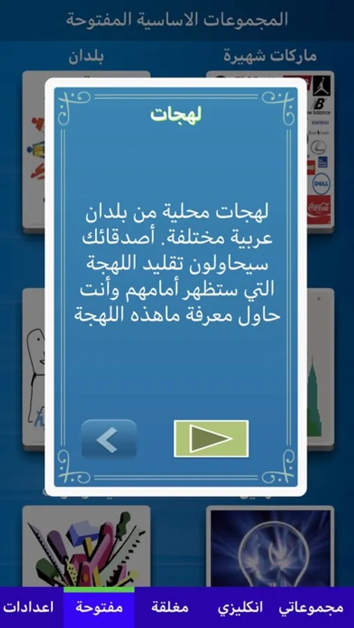 يمكنك الاختيار بين أكثر من ٣٠ فئة وآلاف الكلمات والتي تغطي مجالات واسعة من الحياة والثقافة العامة:
