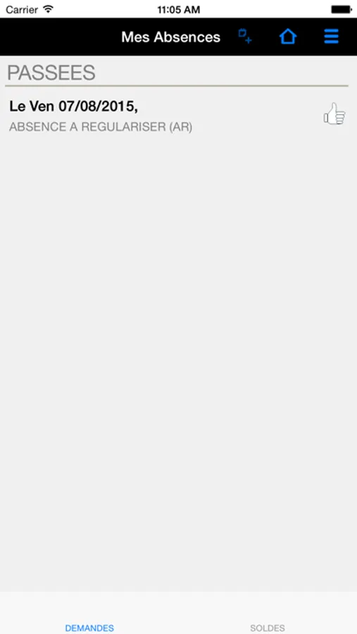 - En attente de validation, En attente d’annulation, Consulter l’historique des demandes
