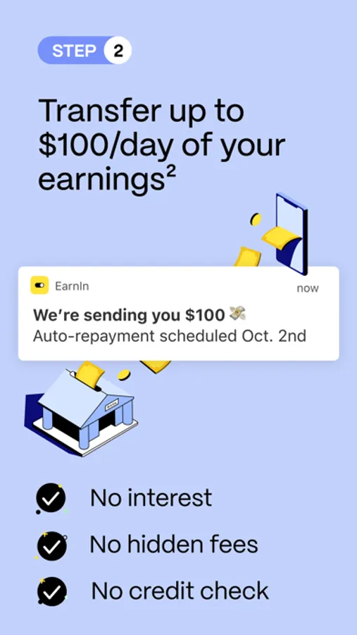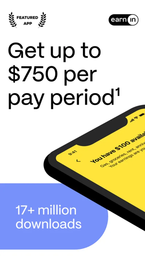 EarnIn is a simple way to access your earnings before payday—and live life on your terms. Get up to $100/day or $750/paycheck to cover any expense.[5] Plus, keep your credit goals moving with free credit monitoring right from the EarnIn app.