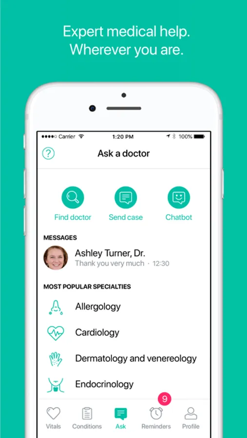 If you need timely medical attention, a team of approved doctors is always at your disposal, with a guaranteed response time. You can now talk to doctors within 8 specialties, and we will be gradually adding more.