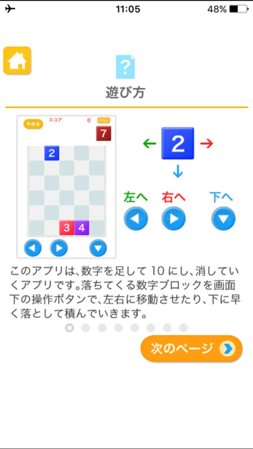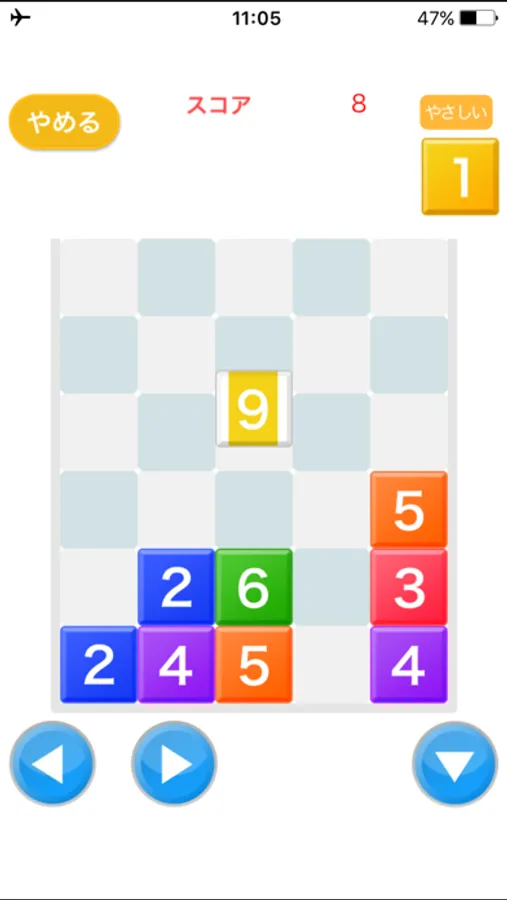 数字のブロックが落ちてきます。足して10になるとブロックが消えるアプリです。