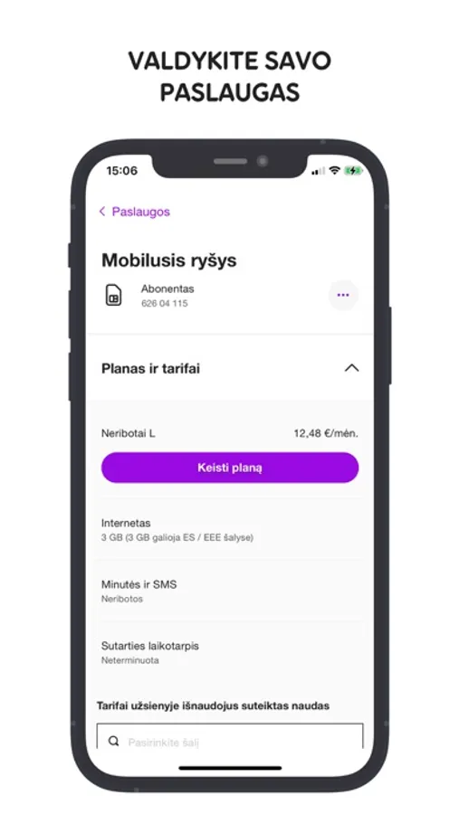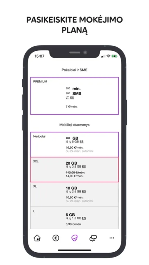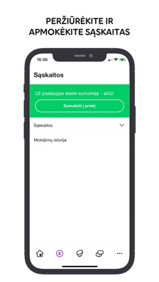 - peržiūrėti mobiliojo ryšio sąskaitas bei išklotines;