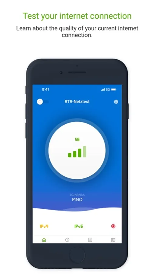 · a map view of all test results with filter options by measurement parameters, statistics, Internet providers, end device and period of time (“map”)