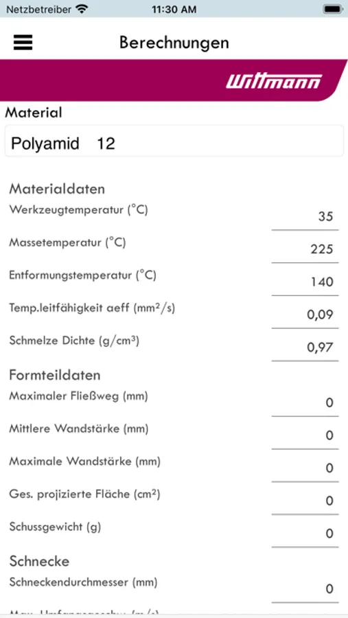 The “WIBA Assist” app supports users in machine setting. It is based on a materials database which contains the most important process parameters. These can be retrieved directly by users. The values are also used for various calculations. For example, by entering just a few parameters, values such as cooling time, cavity pressure, injection pressure, clamping force, dosing volume or screw speed can be calculated.