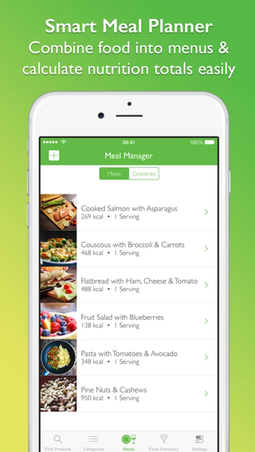 • Get insights on meals: turn your favorite recipes into meal combinations and get to know how healthy each recipe is. It’s easy to experiment and even find great tasting substitute products in case you want to cut down on fat / sugar / carbs, etc.