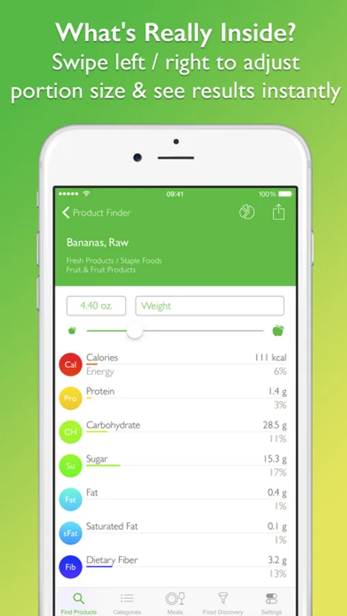 • The "Nutrition Explorer" helps you find products that meet your nutritional goals: Simply set upper and lower range limits for calories, fat or any combination of nutrient values and the app presents you with matching food results!