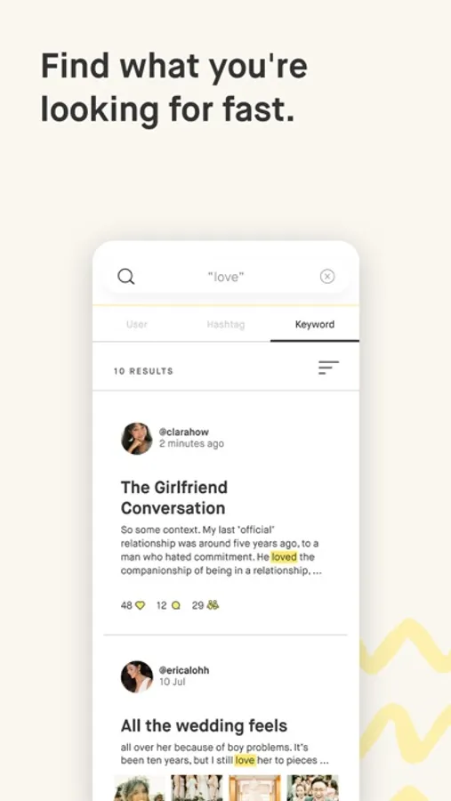 - Find topics and content with our in-app search function that enables you to search for users, hashtags, or keyword