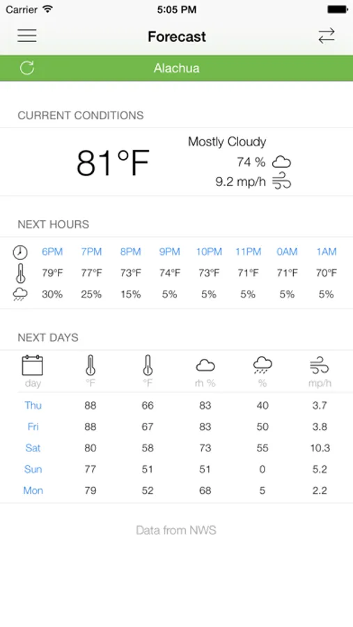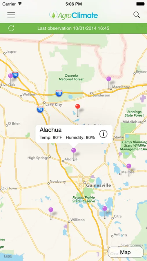 This app helps producers in the state of Florida, USA to keep track of specific weather and forecasted data for their fields and crops.