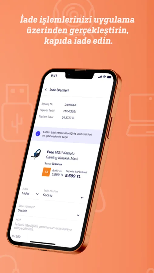 Online alışverişin konforu ve fiyat avantajları Teknosa farkıyla şimdi mobil uygulamamızda. Mobil uygulamamıza özel indirimlerden yararlanmak için tek yapmanız gereken turuncu fırsatları avucunuza kadar getiren mobil uygulamamızı indirmek. Üstelik dilerseniz üye olmanıza da gerek yok, mobil uygulamamızdan alışveriş yapmak yalnızca saniyelerinizi alacak. İhtiyaç duyduğunuz ve indirimini yakaladığınız ürünü sepetinize ekleyebilir, üye olmadan alışverişe devam edebilir ve mailinize gelen onay koduyla siparişinizi tamamlayabilirsiniz. Teknosa ile sanal alışveriş her zamankinden zahmetsiz! Teknosa ile Güvenli Alışveriş Deneyimi! Binlerce fırsat ve avantajlı kampanyaya, dünyaca ünlü markaların birbirinden işlevsel ürünlerine kolayca ulaşabileceğiniz mobil uygulamamızdan güvenle alışveriş yapabilirsiniz. Sanal alışveriş deneyiminizi bir üst noktaya taşımak için mobil uygulamamızda SSL Güvenlik Sertifikası bulunuyor. Güvenli e-ticaret için hesabınızın sahipliği doğrulanıyor, kullandığımız şifreleme teknolojisi sayesinde verilerinizin manipüle edilmesi engelleniyor. Teknosa, Yaşamınızı Güzelleştirir. Apple, Samsung, Sony ve Siemens gibi dünyaca ünlü markaların cep telefonu, tablet, bilgisayar, televizyon, beyaz eşya ve elektrikli mutfak aletleri gibi yüksek performanslı ve hayatınızı kolaylaştıracak ürünleri; eviniz için aydınlatma sistemleri, ofisiniz için kırtasiye malzemeleri, hobilerinizi doyasıya yaşamanız için enstrümanlar Teknosa mobil uygulamasında. Dahası da var! Doğa ile baş başa kalmak isteyenlere özel birbirinden işlevsel kamp ekipmanları da formuna dikkat edenlerin vazgeçilmezi olan spor fitness ekipmanları da Teknosa farkıyla sizlere sunuluyor.