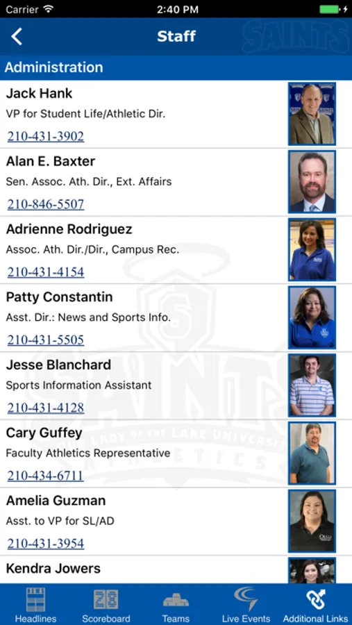Follow Our Lady of the Lake University Saints Athletics, a member of the National Association of Intercollegiate Athletics and the Red River Athletic Conference.