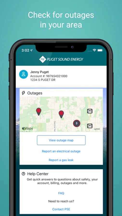 The myPSE app provides easy access to your account when you're on the go. Check your balance and make a payment with just one click. Track & report power outages in your neighborhood and check on restoration times, all in the palm of your hand.