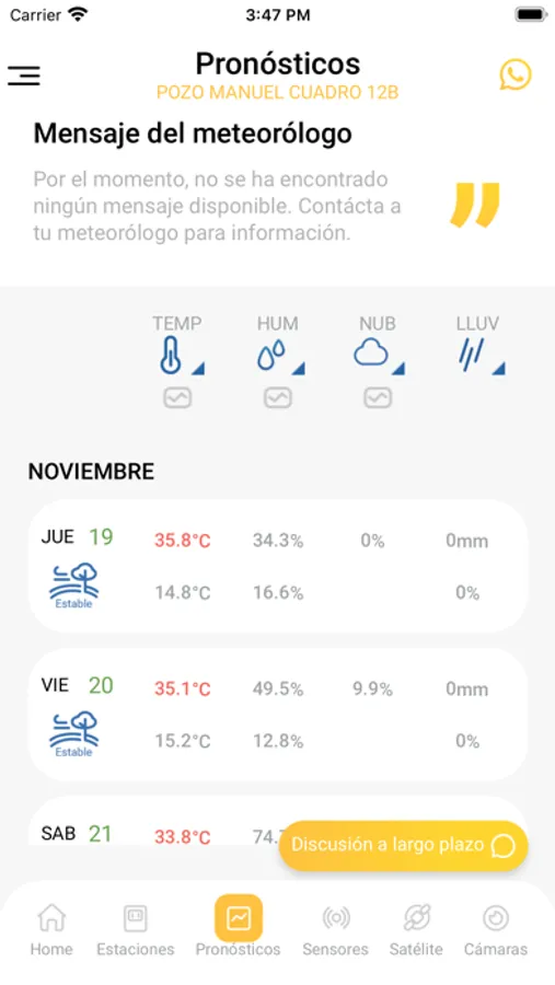 Evita sorpresas tras la aplicación de agroquímicos costosos que son susceptibles a condiciones como lluvia o viento. Analiza fechas apropiadas.