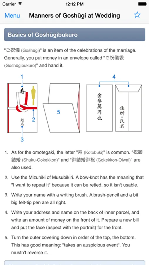 Manners of the Noshibukuro / Business Etiquette / Writing of Letter / Table Manners / Manners of Wedding / Manners of Funeral Services / Manners of Omimai