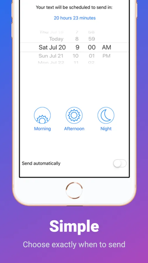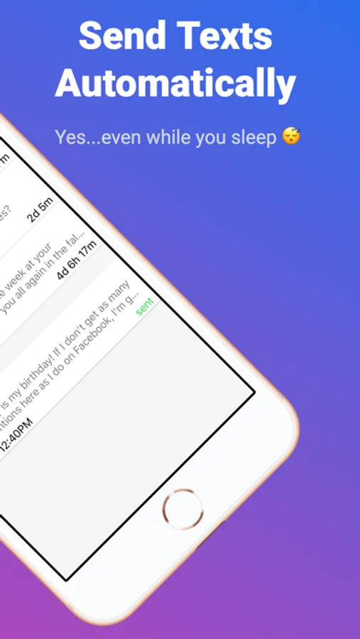 This app also offers Text Delay Plus. A service that sends texts automatically when you want them sent. It's not a reminder, you don't have to tap anything, it just sends your text when you want it sent.